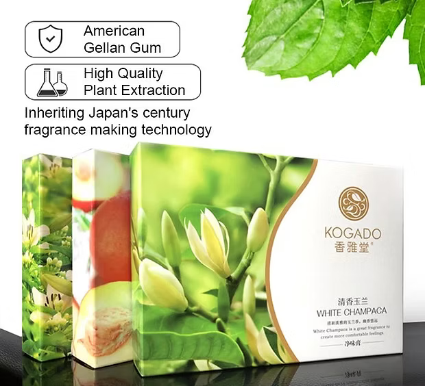 [New Technology Innovation] New Technology to Preserve Natural Scents into Soft EVA Polymer. KOGADO can use innovative technology to solve this technical problem, keep the original scents of aroma and continue to deliver fragrance for 45 days. (Technical problem that is difficult for many manufacturers to solve: when the essential oils are injected at 120°C, it is difficult to maintain the stability and durability of the fragrance during high temperature injection.)